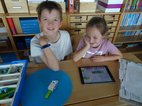 In einem nächsten Schritt machten wir uns daran, den Umgang mit den iPads zu lernen. Dabei hatte ich mein iPad immer als Hilfe aktiv am Klassenscreen und konnte so auch einmal schnell allen helfen, oder die Kinder konnten ihren Mitschülern zeigen, was sie herausgefunden hatten. Am Ende der Einheit konnten alle die iPads starten, die verschiedenen Programme im Forscher- und Challlenge-Modus wählen, Schwierigkeiten einstufen, den Blue Bot über die Programme steuern. Dabei half auch sehr, dass die Kinder vom ersten Schultag an täglich zumindest einmal an einem der Schülerrechner sitzen, um eine Schulaufgabe zu lösen, oder einen Teil des Tagesplanes zu erfüllen, oder um in der Freiarbeit ein geeignetes Lernspiel zu spielen. Dabei habe ich in der Mehrstufenklasse den Vorteil, dass die Zweitstüfler all ihr Können SEHR GERNE an die Erststüfler weitergeben, was mich sehr unterstützt im Unterricht. Somit bekommt der Umgang mit den Geräten auch eine Selbstverständlichkeit und wird als Lehr- und Lernmittel genutzt und manchmal nehmen die Kinder auch gerne selbst eine Auszeit.